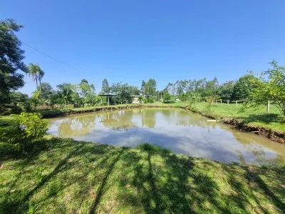 Linda chacrinha de 10.000 m² sendo 50 metros de frente para estrada principal. Área totalmente cercada, porteira, plana, diversas árvores frutíferas, 2 açudes com bastante peixes. Casa rústica, com 2 dormitórios, banheiro, churrasqueira, piso cerâmico, forno e fogão campeiro. Local de fácil acesso via asfalto e 1 km de estrada de chão, distante 16 km de Ivoti. Local tranquilo e sossegado, vale a pena visitar. Entre em contato.